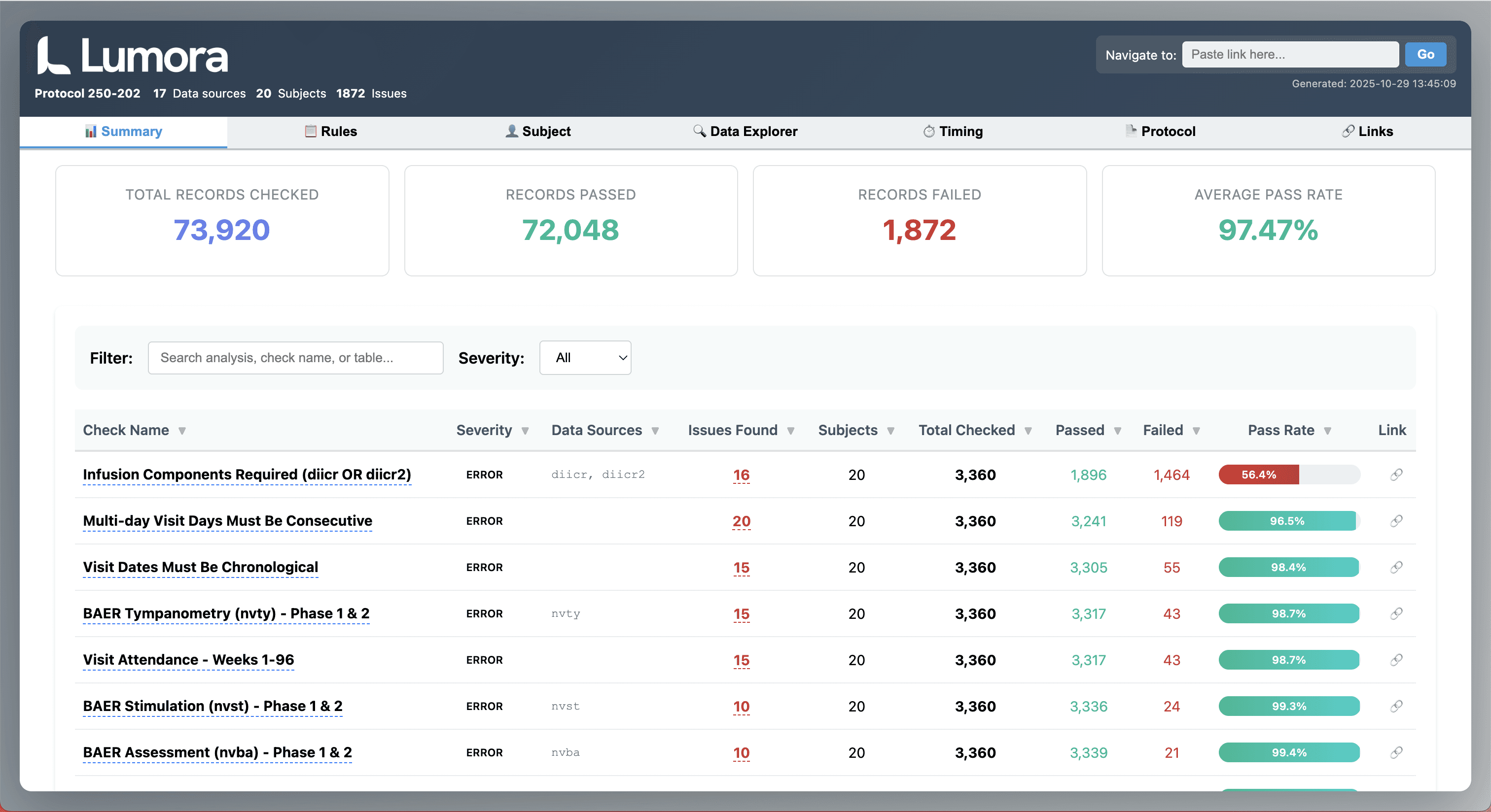 Lumora automatically learns clinical dataset and data rule to prepare for validation.