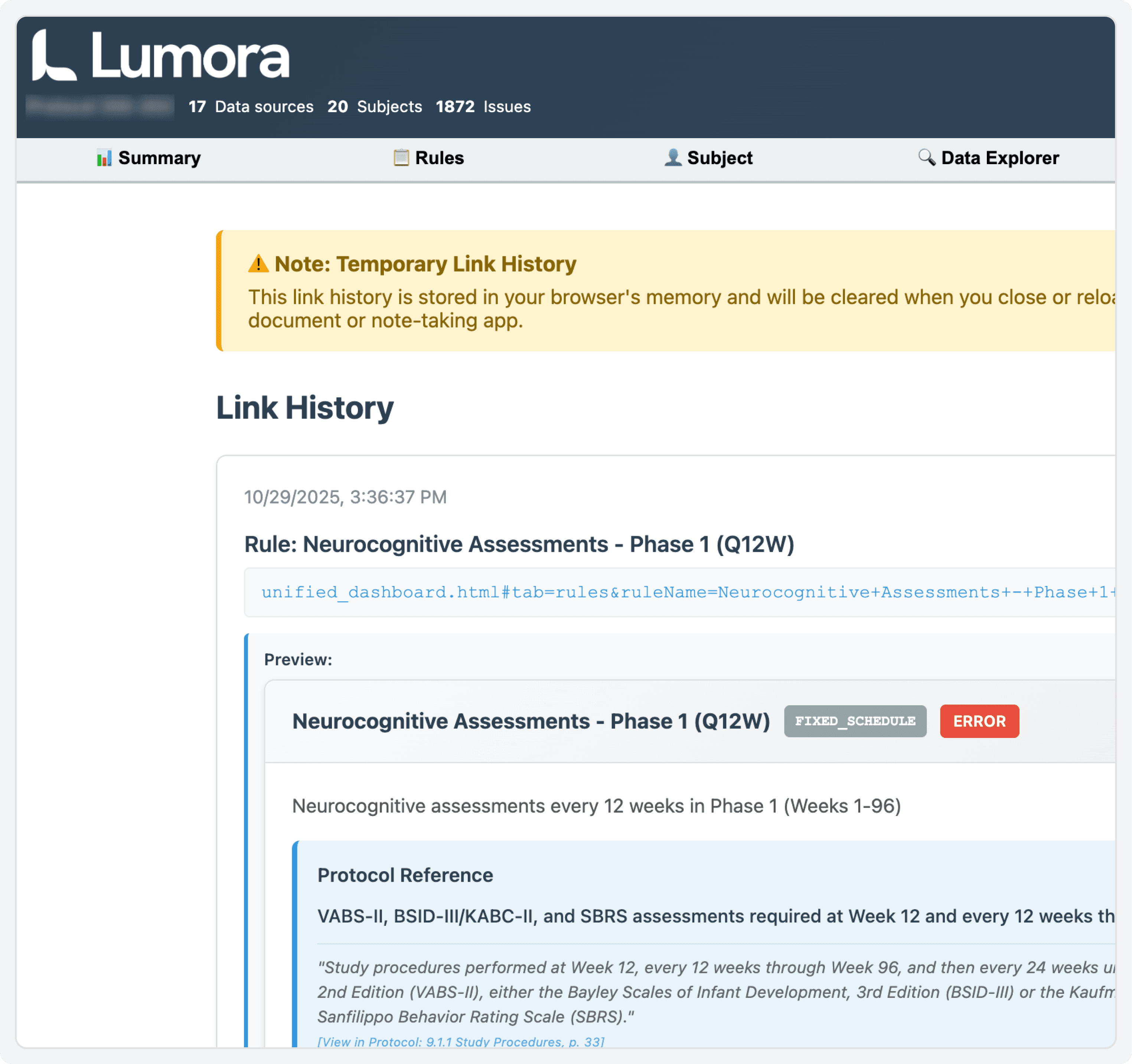 Lumora autonomously detects clinical data errors, traces root causes to the source files, and suggests fixes across medical records, which cutting weeks of manual review into minutes.